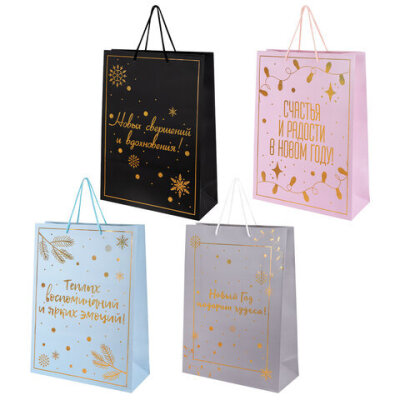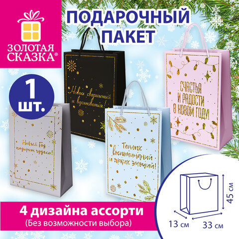 Подарочный новогодний пакет "Сказочный Новый Год" ЗОЛОТАЯ СКАЗКА – отличное решение для упаковки любого презента, которое позволит легко и со вкусом оформить выбранный подарок.