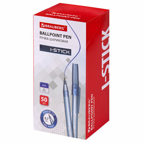 Ручка шариковая BRAUBERG "i-STICK" СИНЯЯ, пишущий узел 0,7 мм, линия письма 0,35 мм, 143442