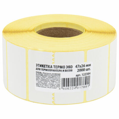 Термоэтикетки ЭКО, 47х26 мм, 2000 этикеток в ролике, 122304