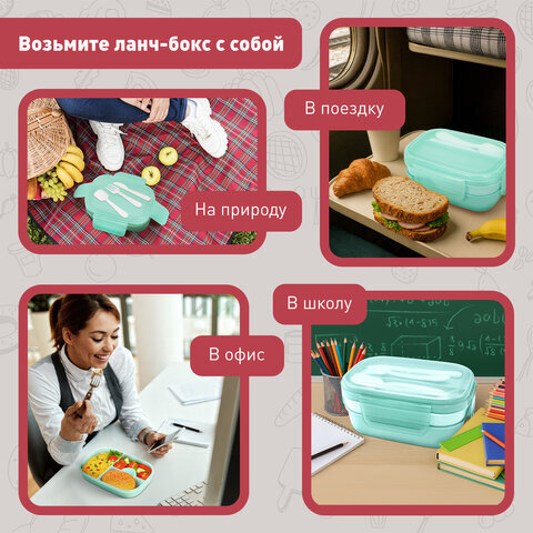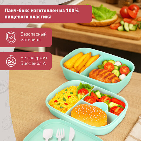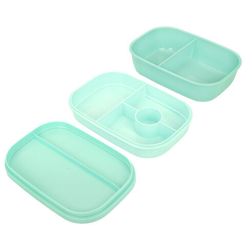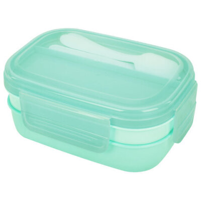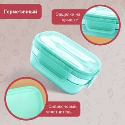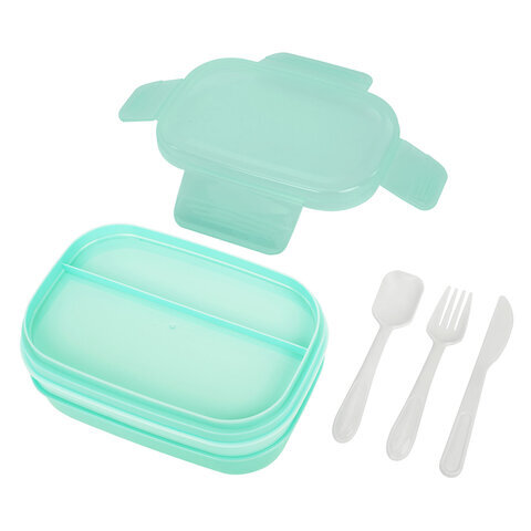 Ланч-бокс контейнер, 3 секции, 8 отделений, 1,9 л, ложка, вилка, нож, 10х21х14 см, мятный, JOYLUX (ДЖОЙЛЮКС), 609350