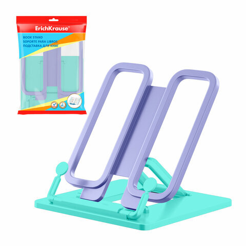 Пластиковая складная подставка ERICH KRAUSE с фиксатором для книг. Подставка позволяет расположить книгу под удобным углом наклона (7 углов), тем самым положительно влияя на осанку и зрение ребенка.