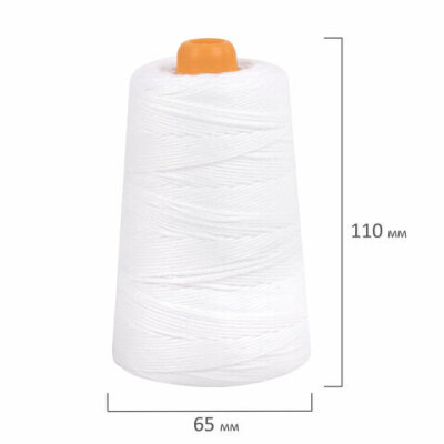 Нить лавсановая для прошивки, БЕЛАЯ диаметр 2 мм, 250 м, ЛШ 640, BRAUBERG ORIGINAL, 608923