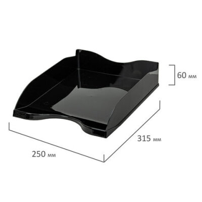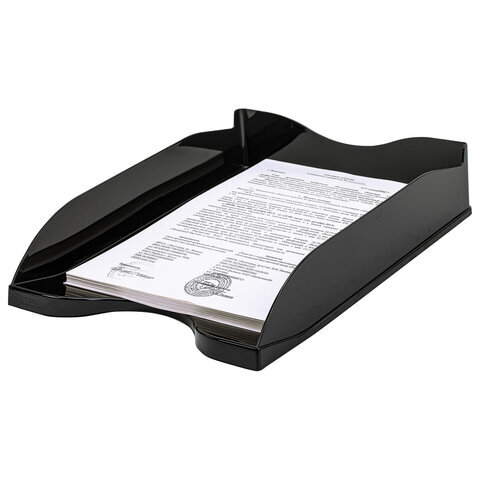 Лоток горизонтальный для бумаг "Люкс", А4 (350х255х65 мм), полипропилен, черный, ЛТГ-30866