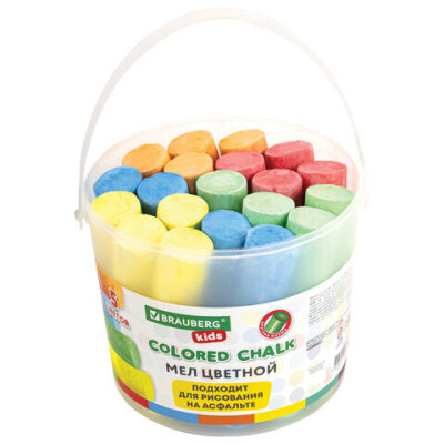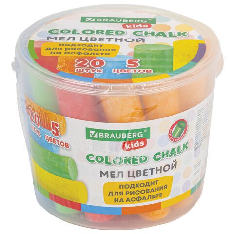 Мел в ведерке для рисования на асфальте 20 штук, 5 цветов, цветной круглый, BRAUBERG KIDS, 272773
