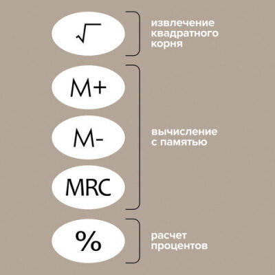 | Функционал | возведение в степень, вычисление с памятью, извлечение квадратного корня, расчет процентов, сложение, вычитание, деление, умножение |
