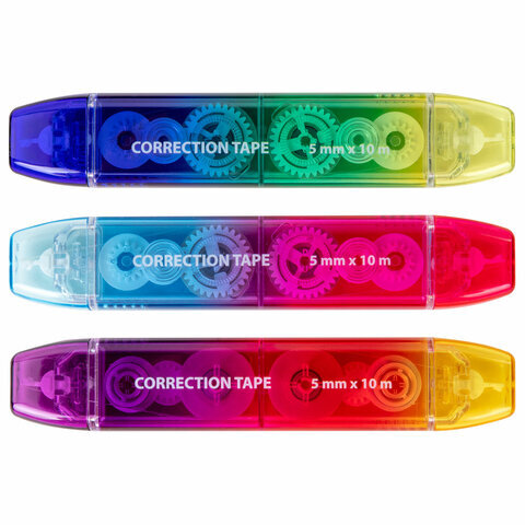 Корректирующая лента двусторонняя 5 мм x 10 м, BRAUBERG "Grade", ассорти, 271941