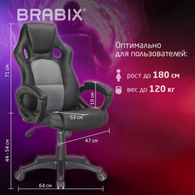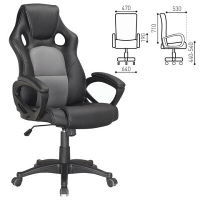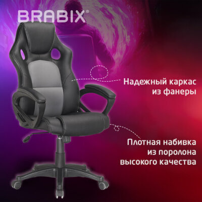 Кресло компьютерное BRABIX "Rider Plus EX-544" КОМФОРТ, экокожа, черное/серое, 531582