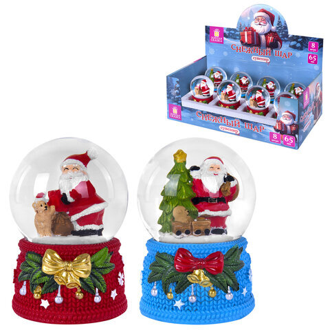 Снежный шар "Дед Мороз" диаметр 65 мм, полистоун/стекло, 2 дизайна ассорти, ЗОЛОТАЯ СКАЗКА, 592598