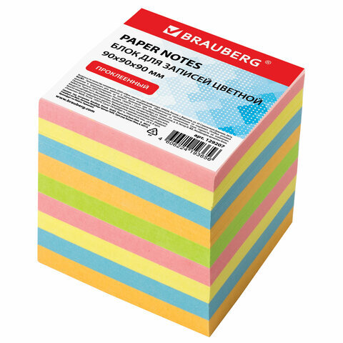 Блок для записей BRAUBERG проклеенный, куб 9х9х9 см, цветной, 129207