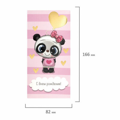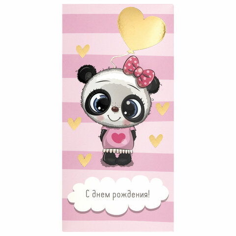 Конверт для денег "С ДНЁМ РОЖДЕНИЯ!", Панда, розовый, 166х82 мм, фольга, ЗОЛОТАЯ СКАЗКА, 113762