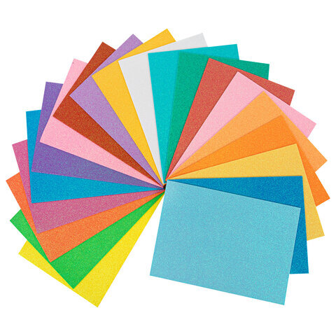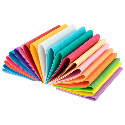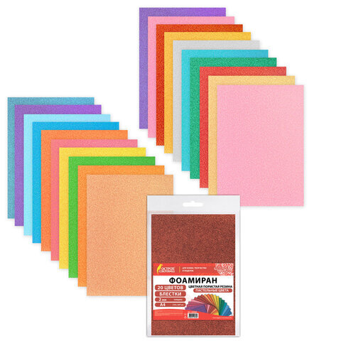Пористая резина/фоамиран А4, 2 мм, НАБОР, 20 листов, 20 цветов, пастельные цвета, блестки, ОСТРОВ СОКРОВИЩ, 665665