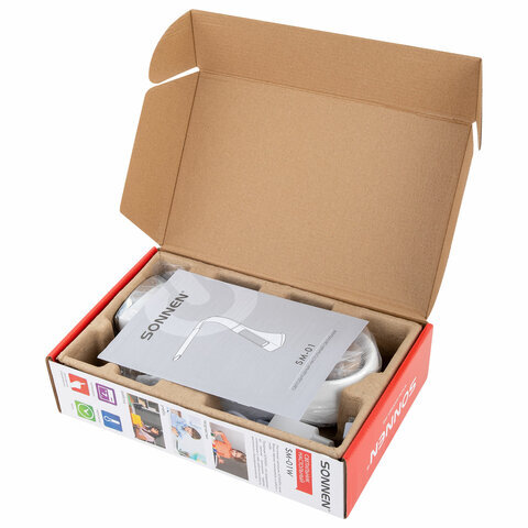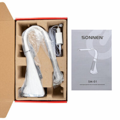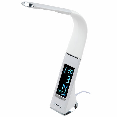 • Настольная лампа-светильник является незаменимым атрибутом рабочего места. Модель SONNEN SM-01W прекрасно подойдет для школьника, студента и офисного сотрудника. Светильник оборудован дополнительными функциями: календарь, часы, термометр, будильник.