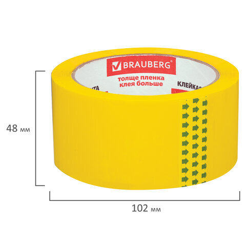Упаковочная клейкая лента BRAUBERG активно используется в торговле, промышленности, быту и подходит для оперативной упаковки с помощью диспенсера или вручную. Отличается высокой адгезией клея (слипанием с поверхностью) и стойкостью к разрыву.
