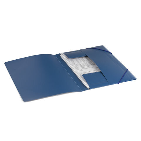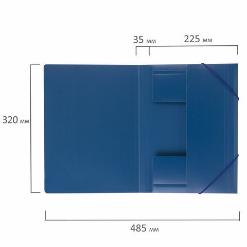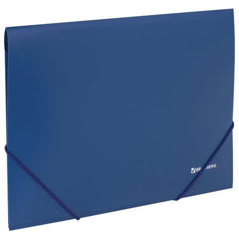 Папка на резинках BRAUBERG, стандарт, синяя, до 300 листов, 0,5 мм, 221623