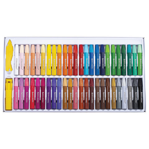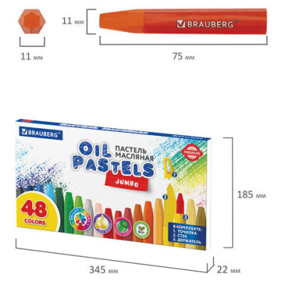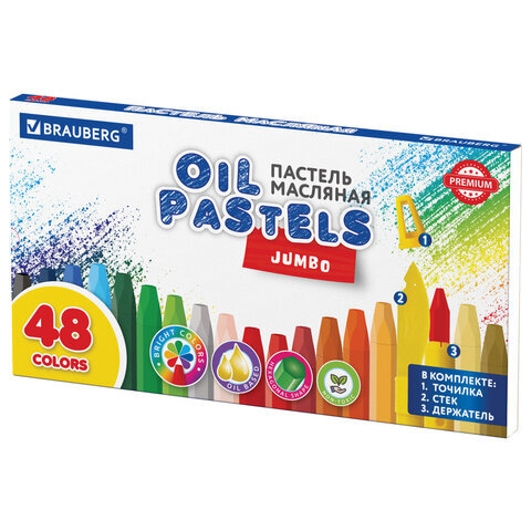 Пастель масляная восковые мелки утолщенные 48 цвета с точилкой, держателем и стеком, BRAUBERG PREMIUM, 272714