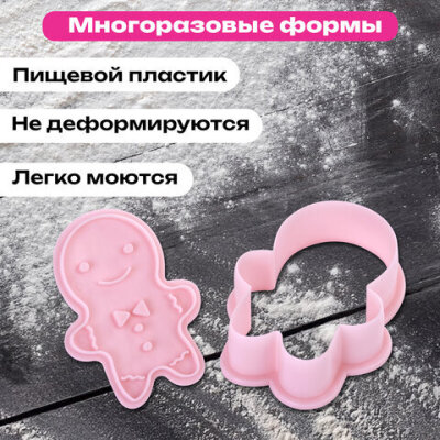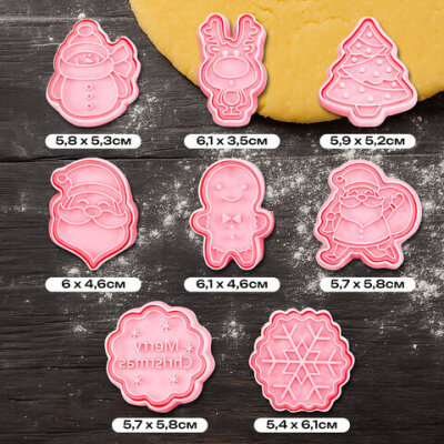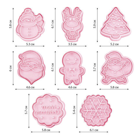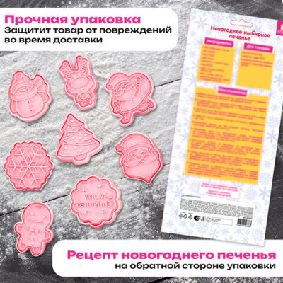 Набор формочек новогодний для печенья, "Печеньки", 8 шт., пластик, рецепт, ЗОЛОТАЯ СКАЗКА, 592492