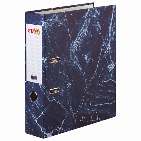 Папка-регистратор STAFF "Basic" БЮДЖЕТ с мраморным покрытием, 70 мм, без уголка, синяя, 229618