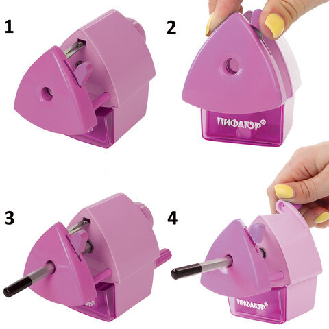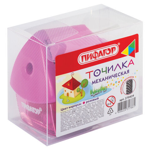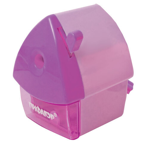 Точилка механическая ПИФАГОР "Домик гнома", металлический механизм, корпус розовый, 270424