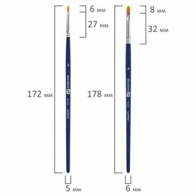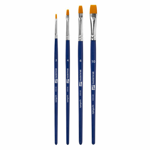 Кисти художественные набор 4 шт., синтетика (плоские № 2, 4, 6, 10), BRAUBERG ART DEBUT, 201032