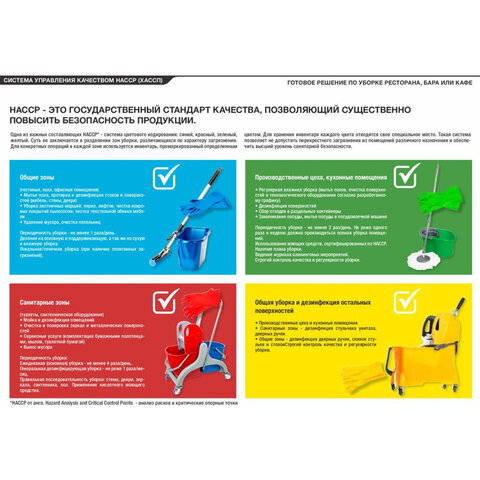 • МОПы профессиональной серии LAIMA EXPERT предназначены для влажной и сухой уборки любых твердых поверхностей, таких, как ламинат, плитка, паркет. МОПы имеют стики 4-цветовой кодировки по HACCP для исключения перекрестного загрязнения помещений.