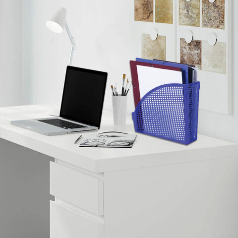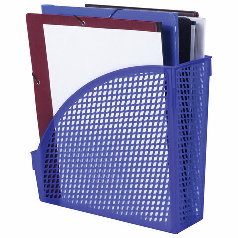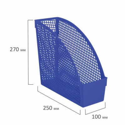Лоток вертикальный для бумаг STAFF "Profit", 270х100х250 мм, сетчатый, полипропилен, синий, 237250