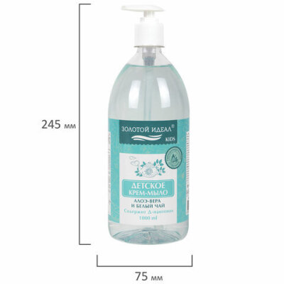 Мыло-крем жидкое гипоаллергенное 1 л, ЗОЛОТОЙ ИДЕАЛ KIDS "Алоэ-вера и белый чай", дозатор, 609431