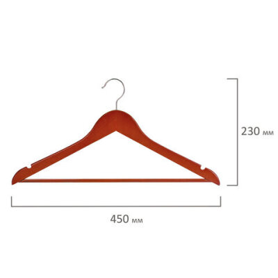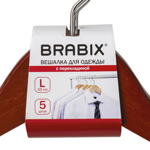 Вешалки-плечики, размер 48-50, КОМПЛЕКТ 5 шт., дерево, перекладина, цвет вишня, BRABIX "Стандарт", 601161