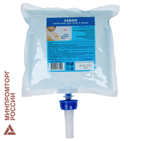 Картридж с жидким мылом-гелем для тела и волос одноразовый (Система S2), 0,475 л, KEMAN, 100026-0475