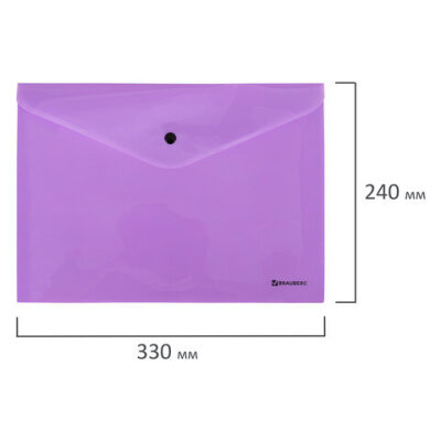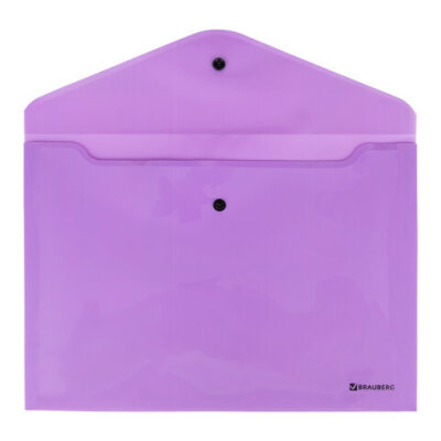 Папка-конверт с кнопкой BRAUBERG "Pastel", А4, до 100 листов, непрозрачная, лиловая, 0,18 мм, 270475
