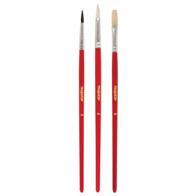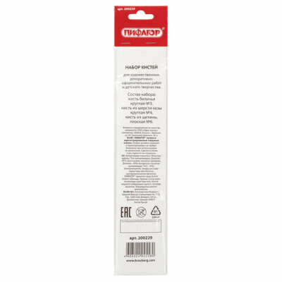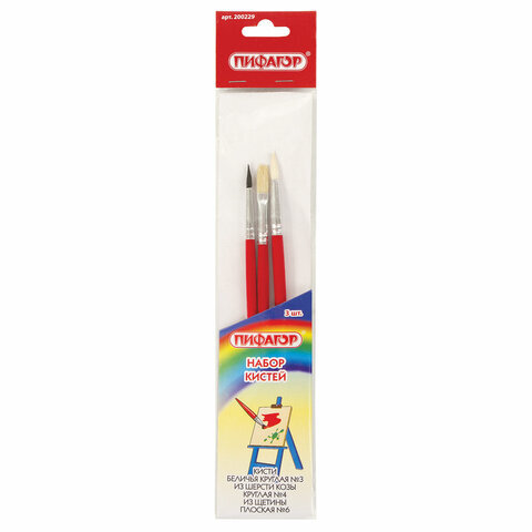 Кисти ПИФАГОР, набор 3 шт. (БЕЛКА: круглая № 3; КОЗА: круглая № 4; ЩЕТИНА: плоская № 6), пакет с европодвесом, 200229