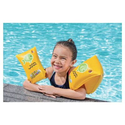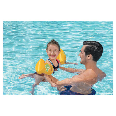 Нарукавники для плавания "Шаг С" BESTWAY размером предназначены для детей в возрасте от 5 до 12 лет. Они помогут ребенку справиться со страхом и научат держаться на воде.