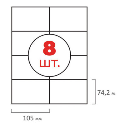 Этикетка самоклеящаяся 105х74,2 мм, 8 этикеток, белая, 70 г/м2, 50 листов, ОФИСМАГ, сырье Финляндия, 115196