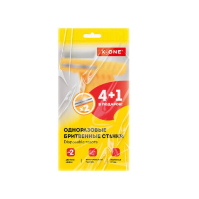 Одноразовая бритва X-ONE с двумя последовательно расположенными лезвиями. В упаковке 5 штук.