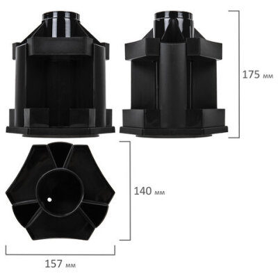 Подставка-органайзер BRAUBERG MAXI DESK, 10 отделений, вращающаяся, 157х140х175 мм, черная, 238093