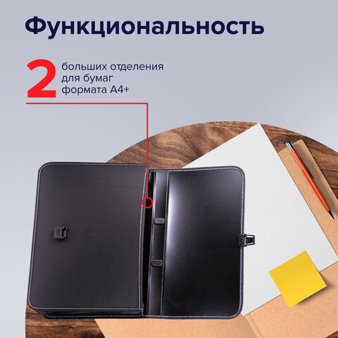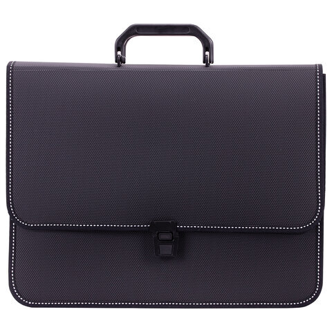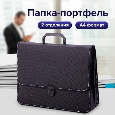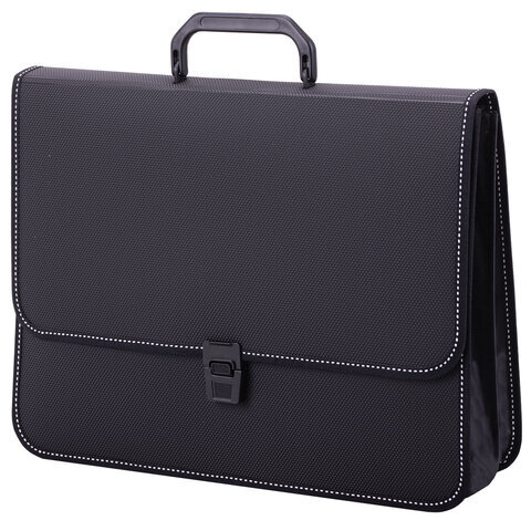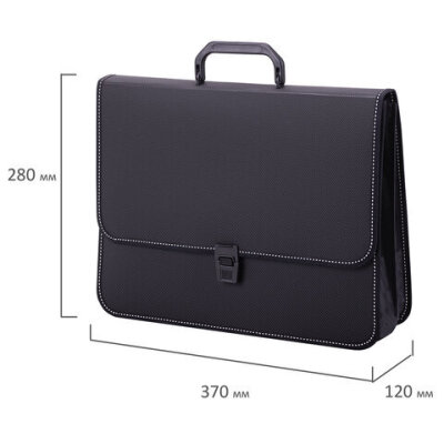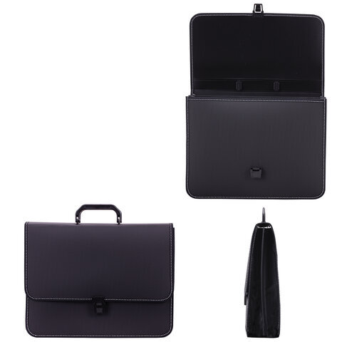 Папка-портфель пластиковая BRAUBERG "КОНСУЛ" А4 (370х280х120 мм), 2 отделения, фактура "бисер", черная, 223079