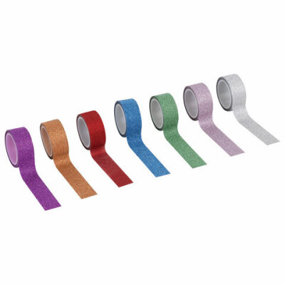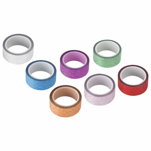 Клейкие ленты полимерные для декора с блестками "ИНТЕНСИВ", 15 мм х 3 м, 7 цветов, ОСТРОВ СОКРОВИЩ, 661715
