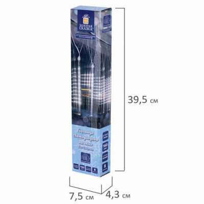 Электрогирлянда-занавес уличная "Сосульки" 2,1х0,3 м, 160 LED, холодный белый, 220 V, ЗОЛОТАЯ СКАЗКА, 591340