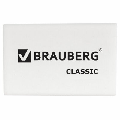Ластик BRAUBERG "Classic", 26х17х7 мм, белый, прямоугольный, 221033