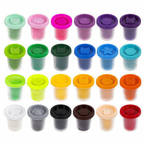 Пластилин-тесто для лепки BRAUBERG KIDS, 24 цвета, 1680 г, крышки-штампики, сундучок, 106722