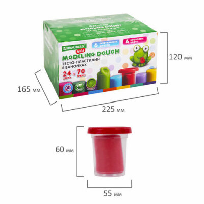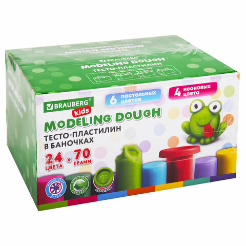 Большой набор пластилина-теста BRAUBERG KIDS развивает и тренирует мелкую моторику рук ребенка, положительно влияет на его эмоциональное состояние. Цвета легко смешиваются и не пачкают руки. Благодаря натуральному составу подходит для малышей от 3-х лет.