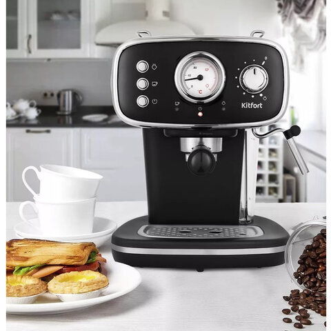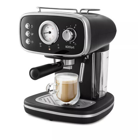 Кофеварка рожковая KITFORT КТ-736, 1100 Вт, объем 1,2 л, 15 бар, ручной капучинатор, черная