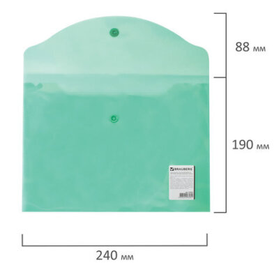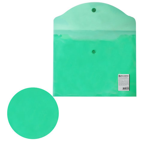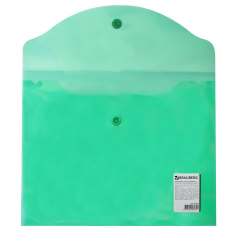Папка-конверт с кнопкой МАЛОГО ФОРМАТА (240х190 мм), А5, прозрачная, зеленая, 0,18 мм, BRAUBERG, 224025
