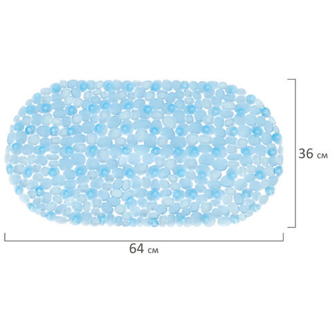 Коврик для ванны противоскользящий 64х36 см "Ручей", овальный, голубой, ПВХ, присоски, PRIMILA (ПРИМИЛА), 700390
