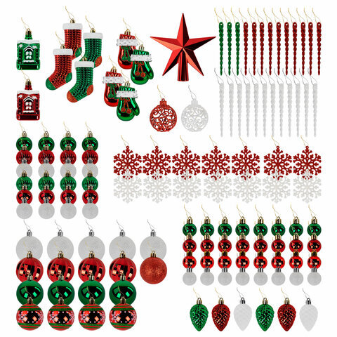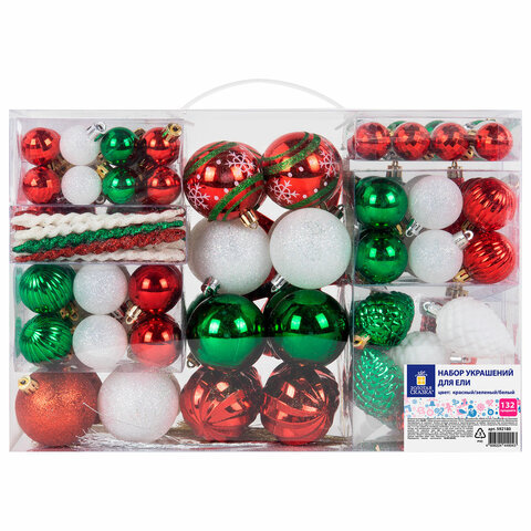 Шары ёлочные НАБОР 132 предмета "Red&Green", красный/зеленый/белый, пластик, ЗОЛОТАЯ СКАЗКА, 592180