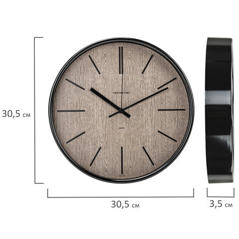 Часы настенные TROYKATIME (TROYKA) 77770743, круг, коричневые, черная рамка, 30,5х30,5х5 см