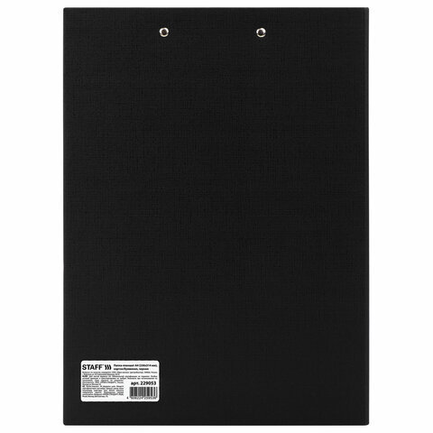 Папка-планшет STAFF "EVERYDAY", А4 (230х314 мм), с прижимом и крышкой, картон/бумвинил, РОССИЯ, черная, 229053