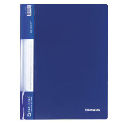 Папка 30 вкладышей BRAUBERG стандарт, синяя, 0,6 мм, 221599