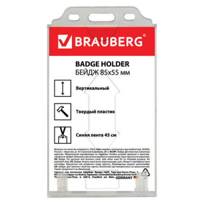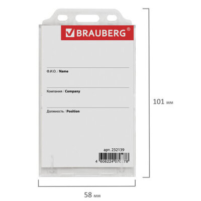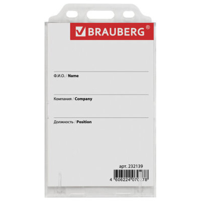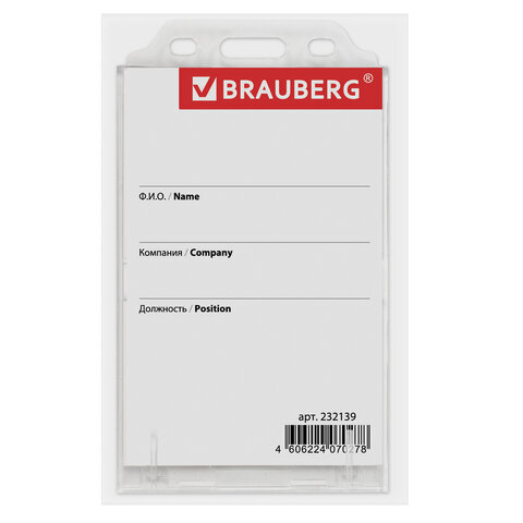 Вертикальный бейдж BRAUBERG для именной карточки предназначен для идентификации сотрудников в компаниях, а также на семинарах, тренингах, презентациях и других мероприятиях.