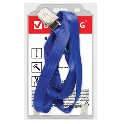 Бейдж вертикальный (85х55 мм), на синей ленте 45 см, твердый пластик, BRAUBERG, 232139