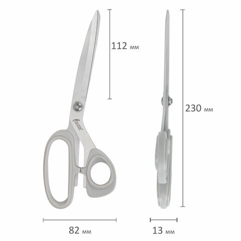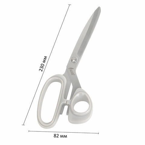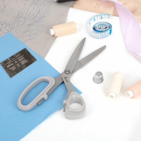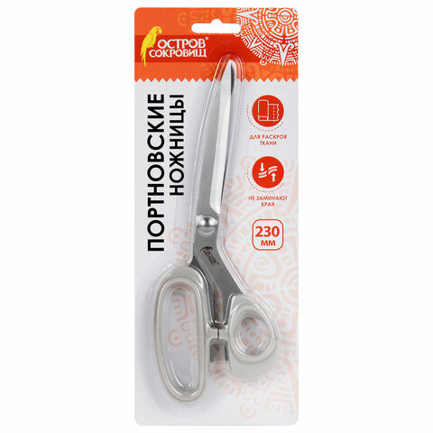 Ножницы портновские 230 мм, КЛАССИЧЕСКИЕ, серые, пластиковые ручки, ОСТРОВ СОКРОВИЩ, 665602